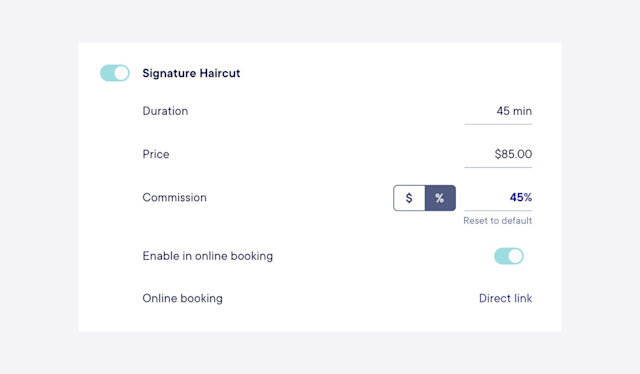 Enter a flat amount or a percentage that will only apply to this staff member and service.