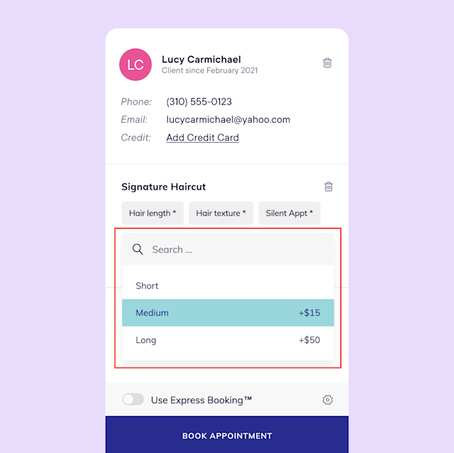 Show option prices in online booking: Enable this toggle to show the price changes (e.g. +$20) next to each option in online booking.
