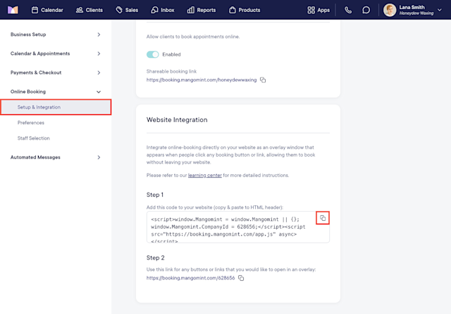 In Mangomint, copy your booking link.