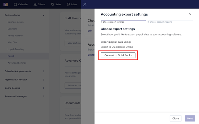 When you run payroll in Mangomint, you can sync your payroll data with QuickBooks Online automatically. This eliminates the need to export payroll data to QuickBooks manually, and it ensures your books stay up to date.