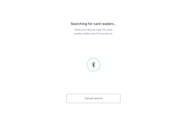 Turn on the card reader and make sure it's charged. Place the card reader close to your iPad and tap Continue.