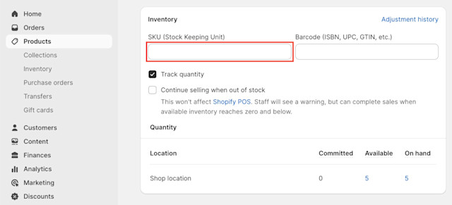 To add SKUs to your products in Shopify, go to the Products screen and select a product.