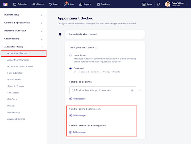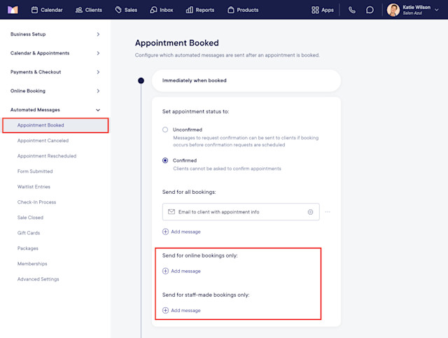 Enable an email notification by opening the Settings app and selecting Automated Messages > Appointment Booked.