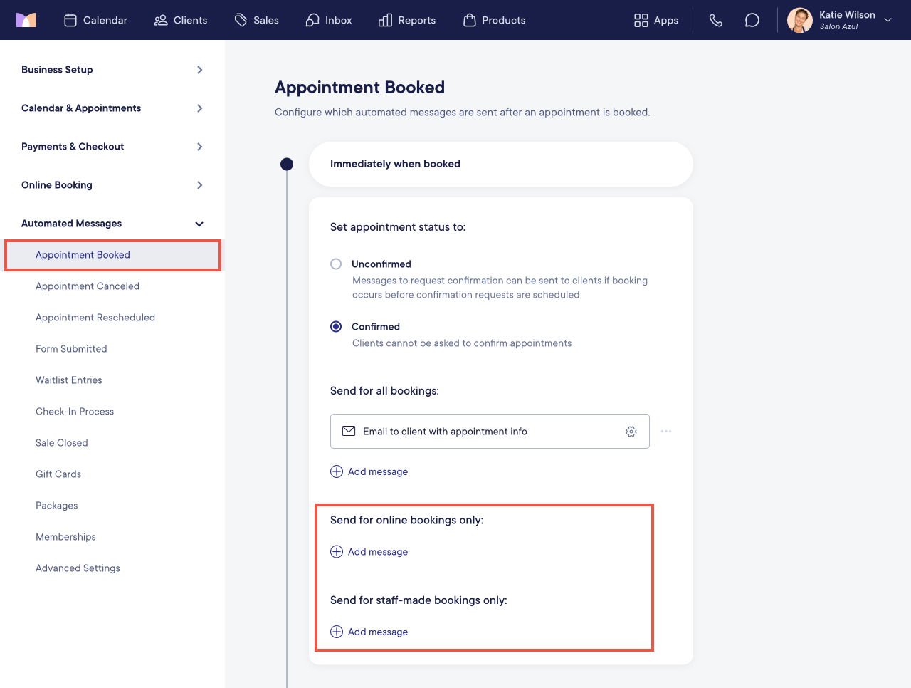 Enable an email notification by opening the Settings app and selecting Automated Messages > Appointment Booked.