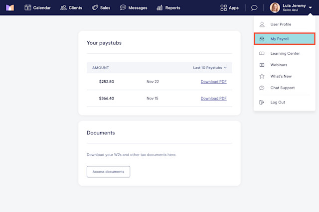 As a worker, you can view your paystubs and tax documents (e.g. W-2 or 1099) in Mangomint.