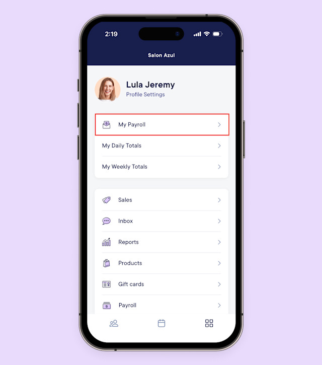 As a worker who has been paid through Mangomint, you can view and download your paystubs and year-end tax documents (W-2 or 1099-NEC) in Mangomint by selecting My Payroll from your profile menu.
