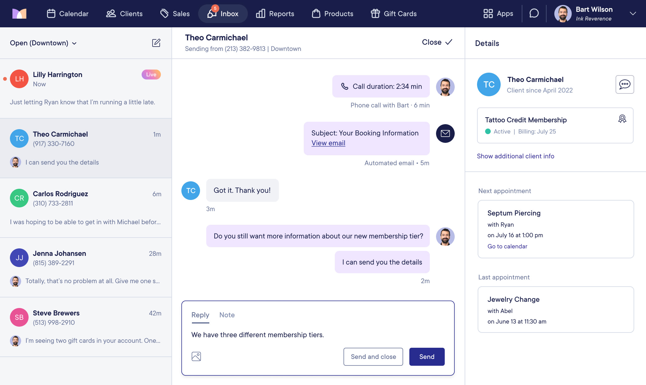 Discuss design approvals, appointment reminders, and aftercare instructions with two-way texting—a better way to communicate with clients.