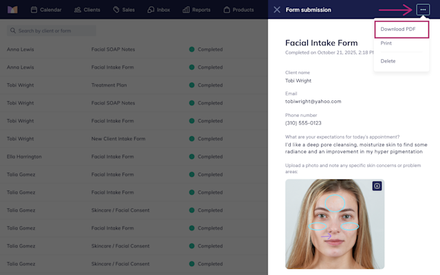 You can now download a complete copy of any form. The export includes all fields, photos, image markups, and submission details like the date and submitter. Perfect for saving records, sharing with clients, or printing for documentation.