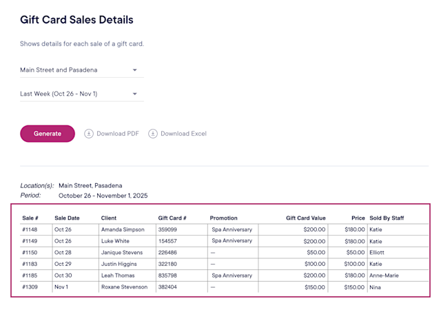 You can now run a detailed report showing all gift cards sold during a selected time period.