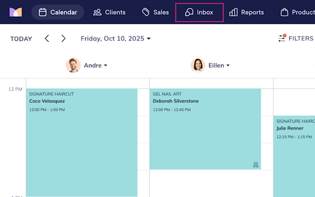 For multi-location businesses, staff will be organized by location and the location currently selected in the calendar will appear at the top of the list.